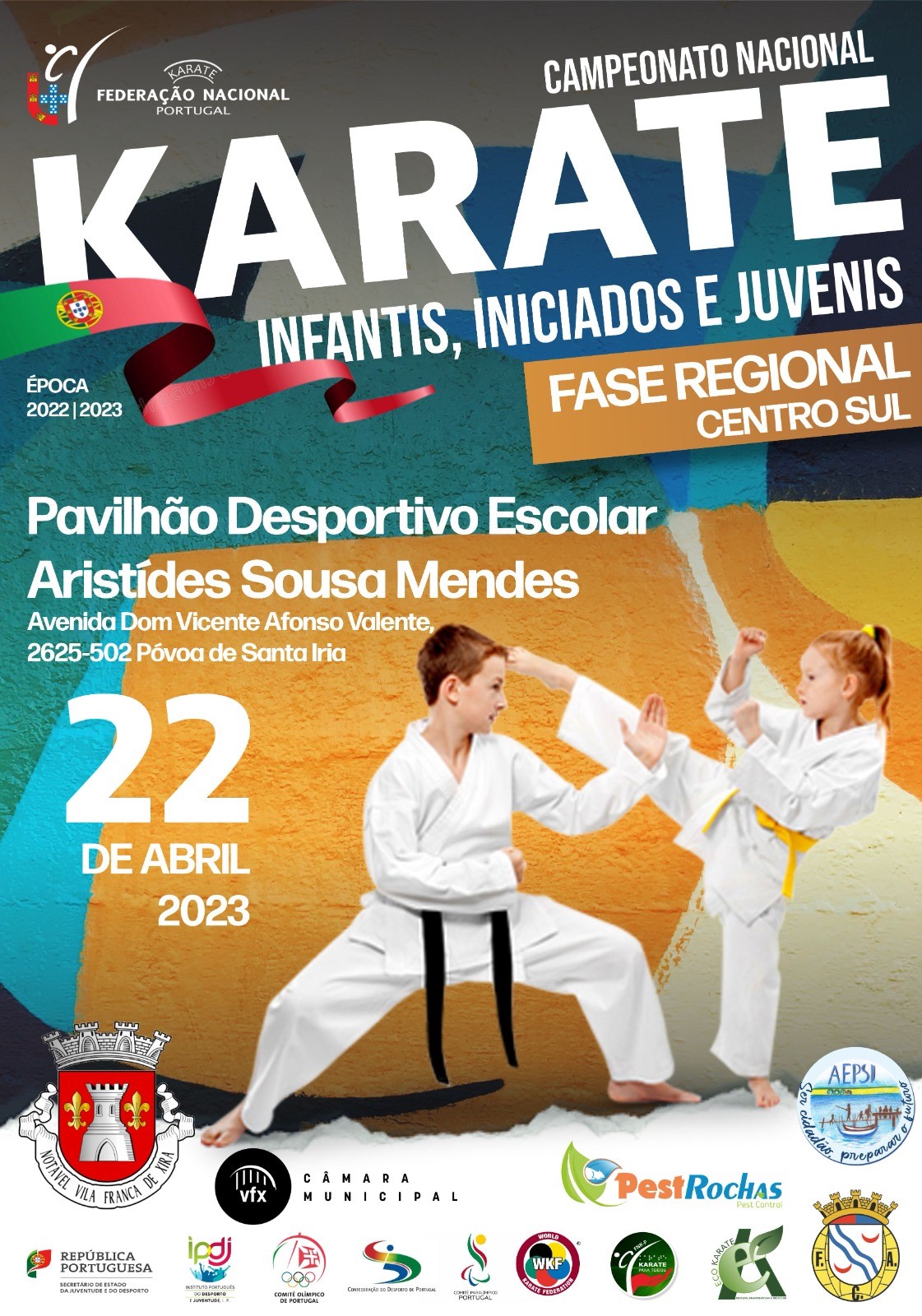 A Fase Regional CENTRO SUL do Campeonato Nacional de Infantis, Iniciados e Juvenis de KARATE encontra-se estabelecida no calendário federativo e agendada para o dia 22 de abril de 2023 no Pavilhão Desportivo Escolar Aristides Sousa Mendes.