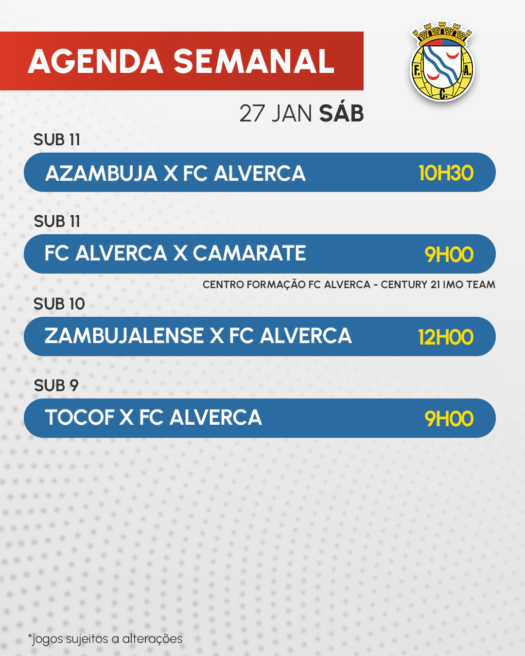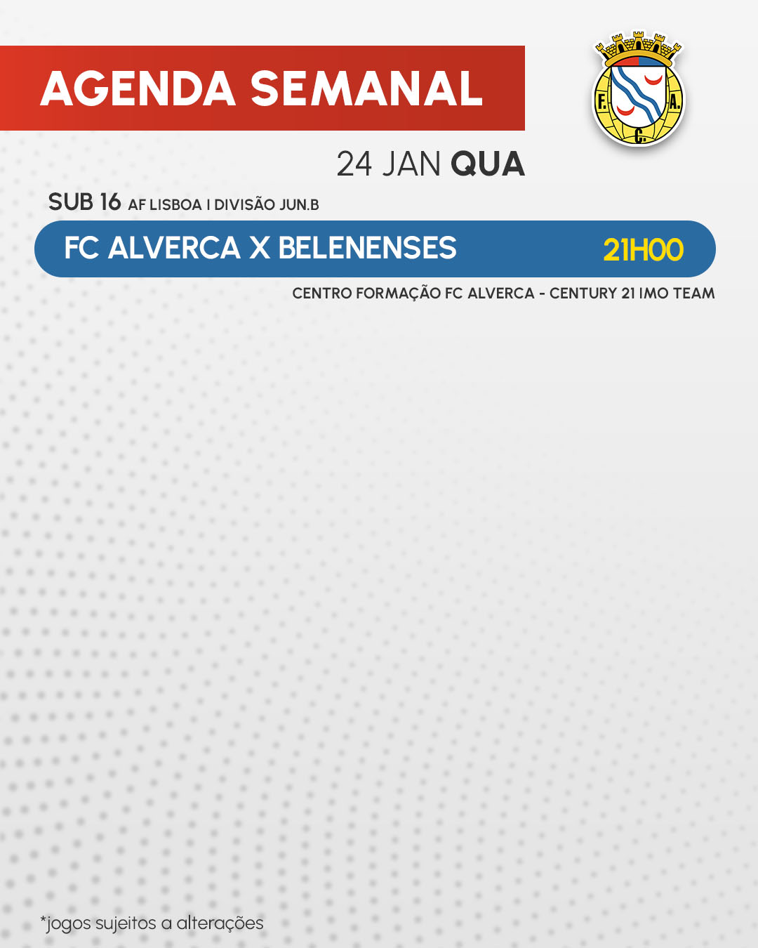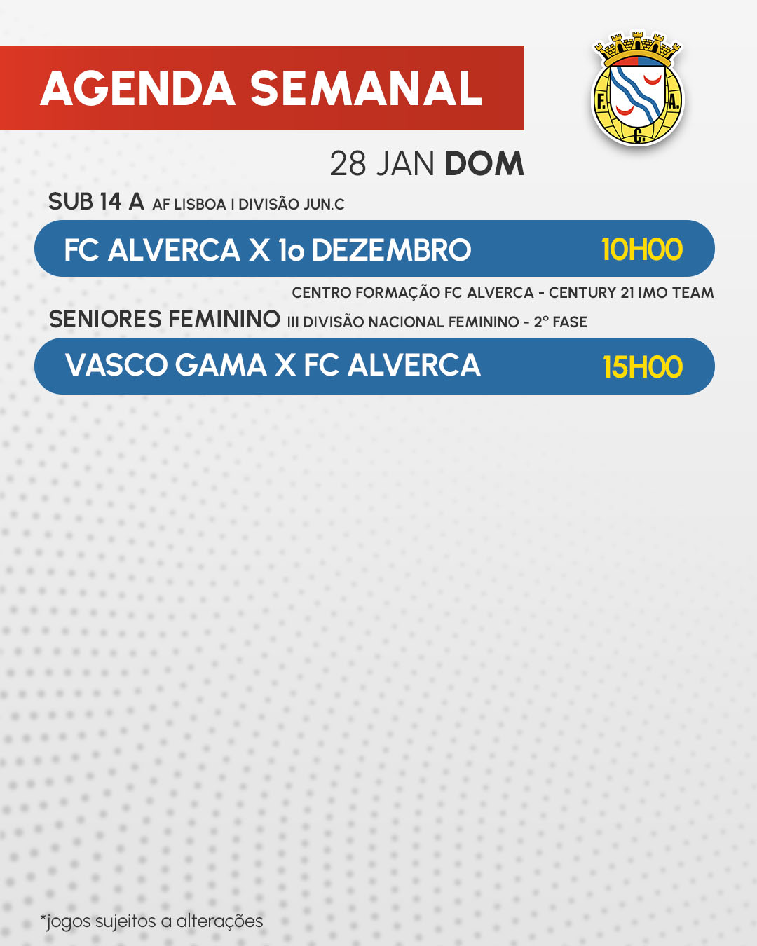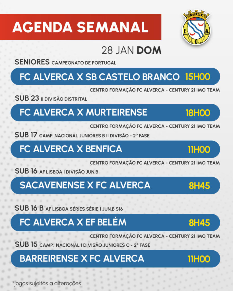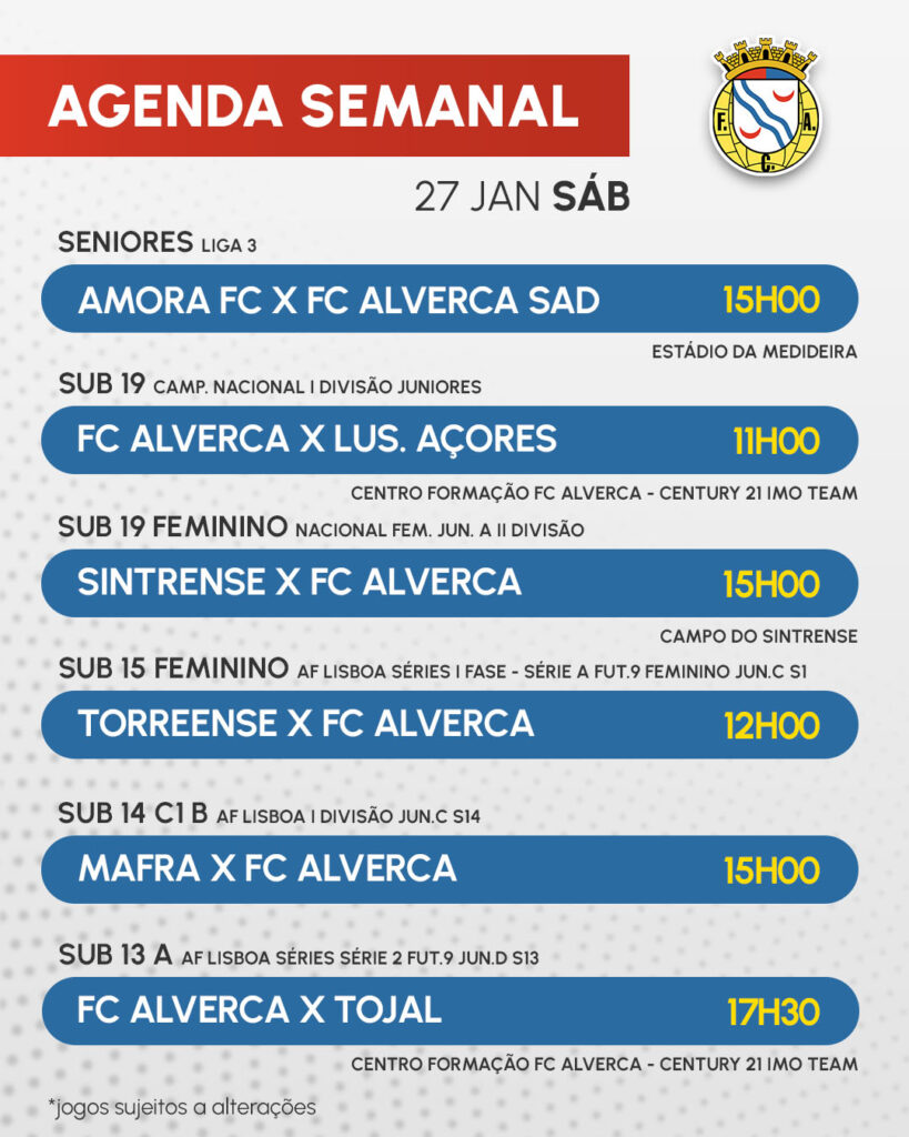 Início » Notícias » AGENDA SEMANAL | 24, 27 E 28 JANEIROAGENDA SEMANAL | 24, 27 E 28 JANEIRO Todos os jogos desta semana.