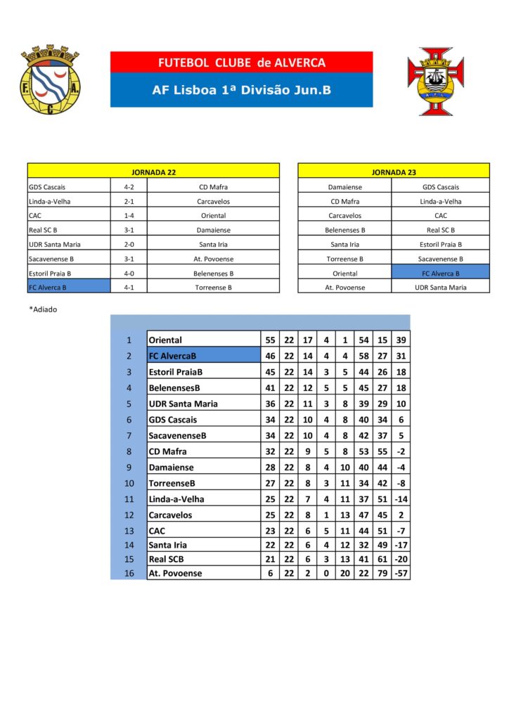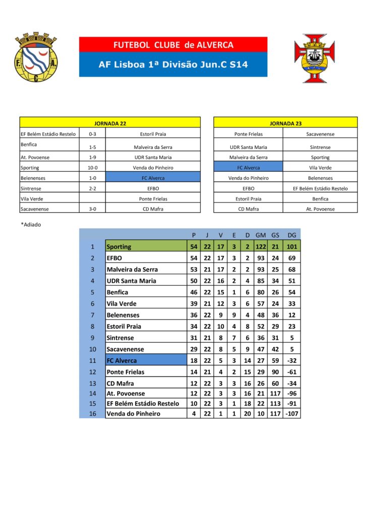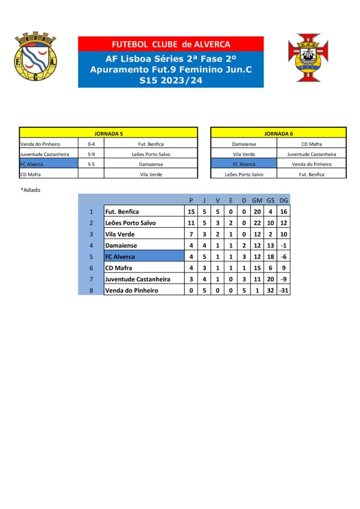 Classificações atualizadas.
