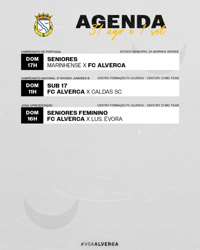 Início » Notícias » AGENDA | 31 AGOSTO E 1 SETEMBROAGENDA | 31 AGOSTO E 1 SETEMBRO Jogos do fim de semana com arranque dos sub-17 e jogo apresentação da equipa sénior feminina.