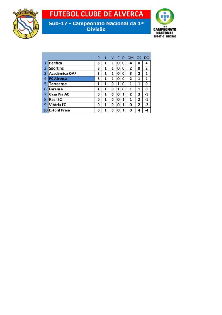 Início » Notícias » CLASSIFICAÇÕES | 11 AGOSTOCLASSIFICAÇÕES | 11 AGOSTO As classificações da primeira semana de competições da época.