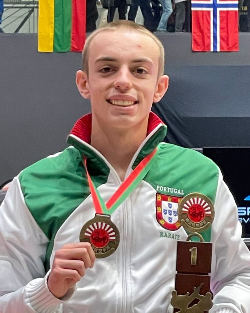 Também em grande destaque esteve Gonçalo Henriques, que brilhou em várias frentes. O jovem atleta alcançou o 3.º lugar em Kata Júnior Individual, obteve ainda o 2.º lugar em Kata Equipa Júnior e sagrou-se Campeão Europeu de Kata na categoria de Cadetes, confirmando o seu talento excecional e a sua evolução competitiva.
